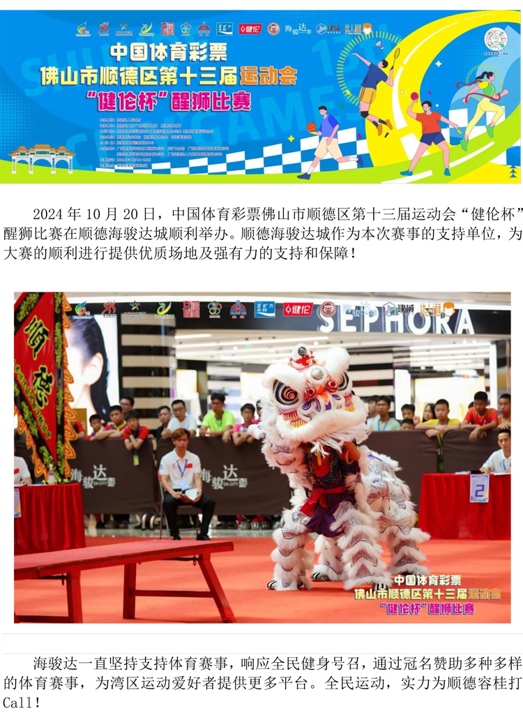 順德海駿達(dá)城大力支持區(qū)運(yùn)會醒獅賽